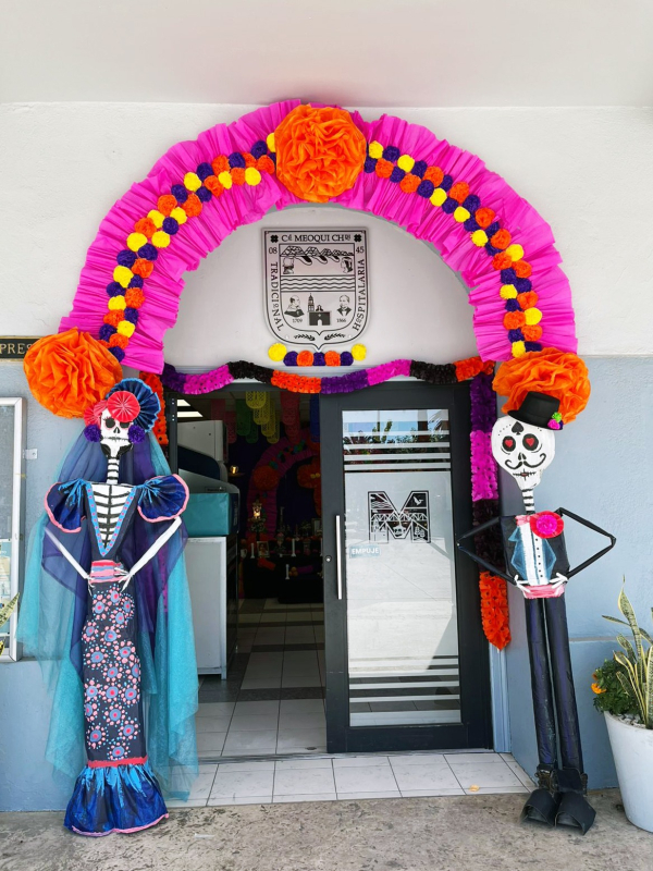 El Gobierno de Meoqui instaló un altar de muertos en la entrada de la Presidencia Municipal, siendo un homenaje para honrar la memoria de familiares y amigos difuntos de los colaboradores del municipio, mismo que cuenta con diversos detalles únicos como lo es la recreación de un funeral, así como elementos típicos como caña de azúcar, veladoras, pan, papel picado, entre otros.