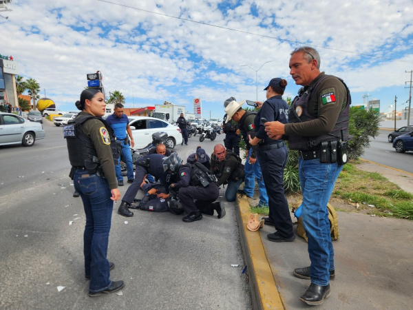 El motociclista impactó de lleno en la parte trasera de la pick up, sufriendo múltiples fracturas. Paramédicos de Cruz Roja acudieron al lugar y trasladaron al elemento a un hospital para recibir atención médica.