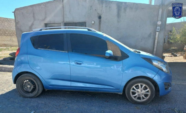 La segunda intervención fue en la Avenida Victoria y 17 en el centro de la ciudad de Guerrero, en donde localizaron un automovil de la marca Chevrolet, línea Spark, modelo 2015, color azul, que tenía reporte de robo del 05 de noviembre del 2025, en la ciudad de Chihuahua.