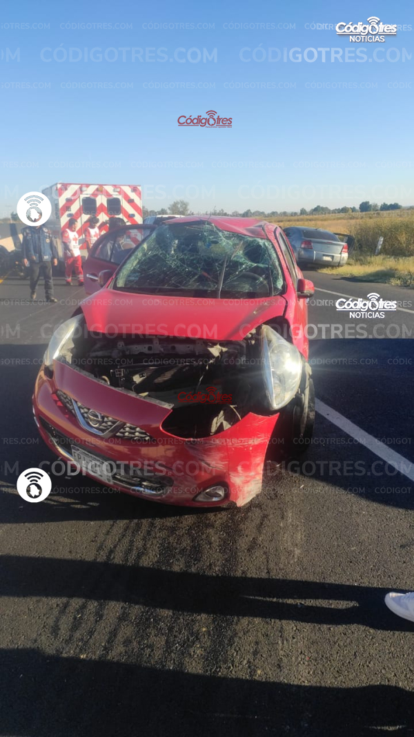 Al lugar arribaron elementos del Cuerpo de Bomberos a bordo de la unidad U16, quienes brindaron apoyo y realizaron la valoración de los ocupantes, confirmando que no presentaban heridas. En el sitio se localizó un vehículo tipo Nissan March con matrículas del estado de Chihuahua, el cual sufrió considerables daños.