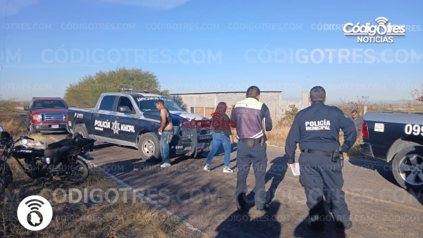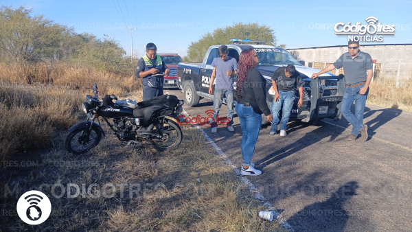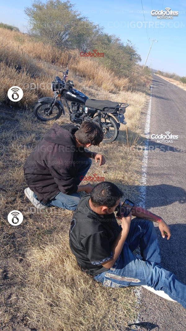 Meoqui, Chihuahua.– Durante la tarde de este sábado se reportó un percance vial en la carretera que comunica al municipio de Meoqui con la comunidad de Orinda, luego de que una motocicleta derrapara y sus ocupantes terminaran sobre el pavimento.