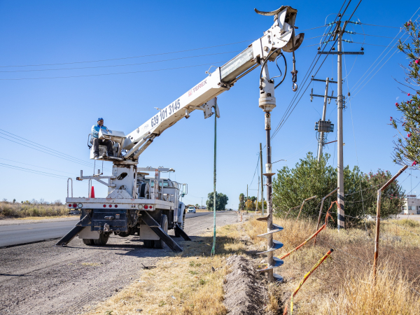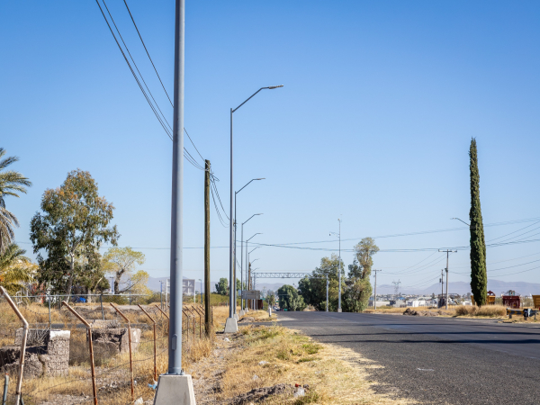 El Gobierno Municipal de Delicias registra avances importantes en los trabajos de instalación de nuevas luminarias en la carretera que conduce de Delicias a la presa Francisco I. Madero, una vialidad muy transitada y considerada estratégica para la movilidad y seguridad de la población.