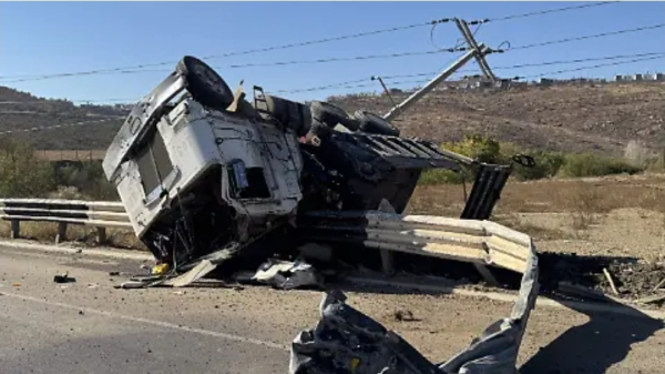 Tras la maniobra, el camión derrapó aproximadamente 50 metros sobre la cinta asfáltica, perdiendo el control y volcando posteriormente hacia uno de los costados de la carretera.