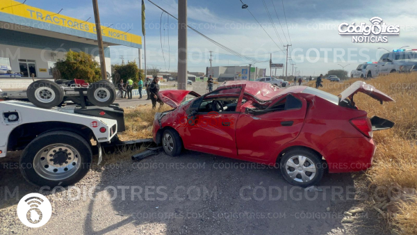 Delicias.- Justo en la carretera federal 45, a la altura de la central de abastos un automóvil Chevrolet línea Beat volcó.