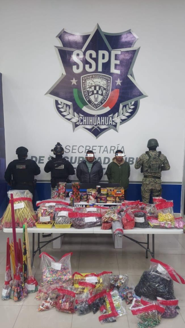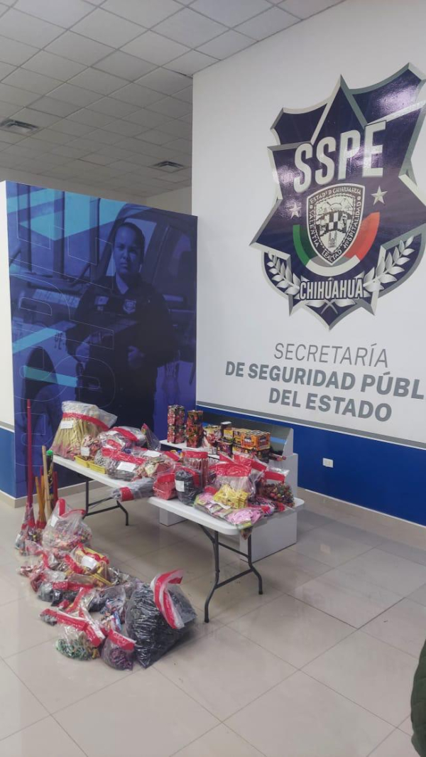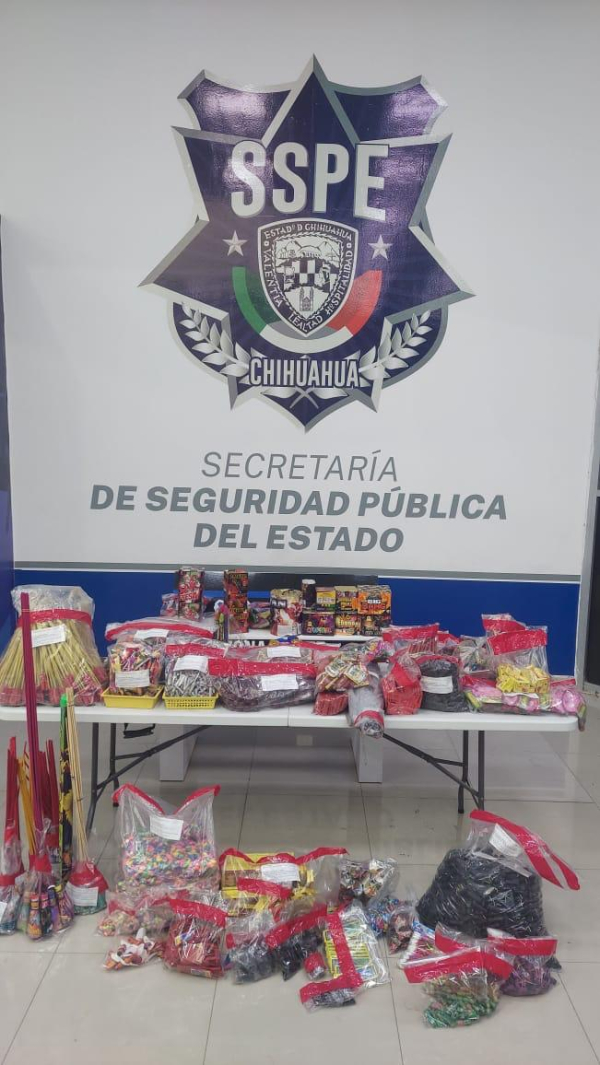 Como resultado de los operativos permanentes de vigilancia y prevención implementados por la Secretaría de Seguridad Pública del Estado (SSPE) en distintos municipios, se llevó a cabo el aseguramiento de 26,812 unidades de pirotecnia que eran comercializadas sin las medidas de seguridad correspondientes, en el municipio de Nuevo Casas Grandes.