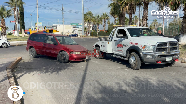 Un aparatoso accidente vial se registró en la glorieta Niños Héroes, luego de que una camioneta tipo van y un vehículo Honda Civic se vieran involucrados en un choque que dejó únicamente daños materiales.