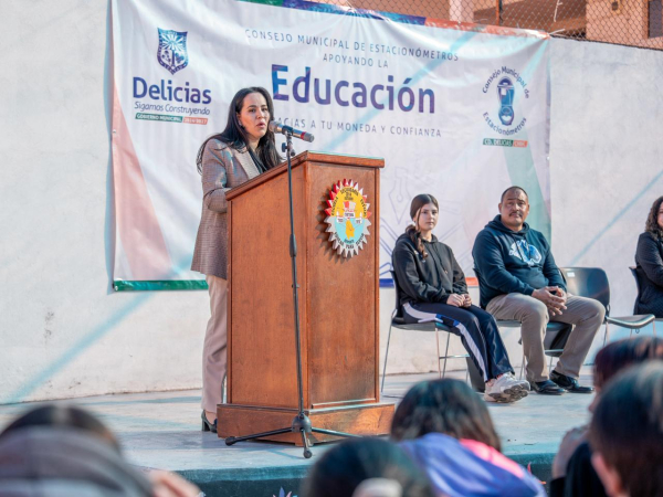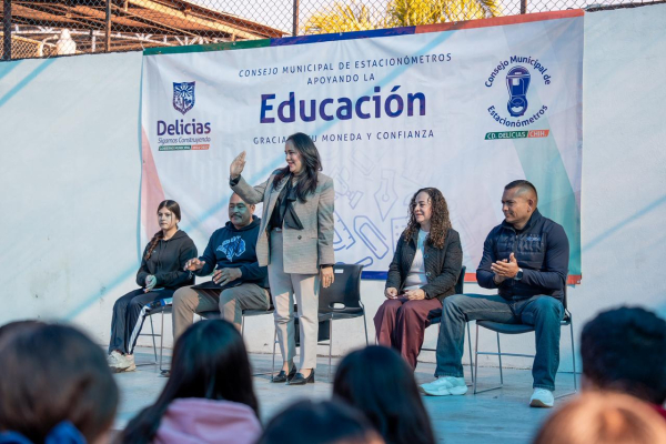 Con la participación del Consejo Municipal de Estacionómetros, la Dirección de Servicios Públicos de Delicias y padres de familia, se realizó la entrega oficial de un donativo a la Escuela Secundaria Estatal No. 3014, encabezada por la presidenta del DIF Delicias, Alma Limas de Valenciano. El apoyo consistió en material para la instalación de malla sombra y estructura metálica en el área del teatro al aire libre y la cafetería del plantel.