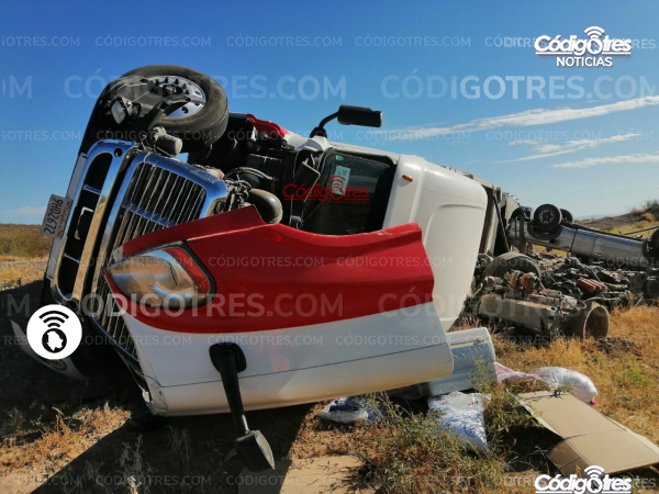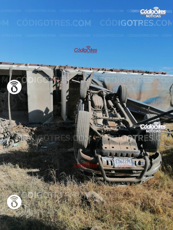 Al interior del camión, transportaba una camioneta de color gris y varios motores de automóvil, los cuales quedaron regados a un costado de la cinta asfáltica.