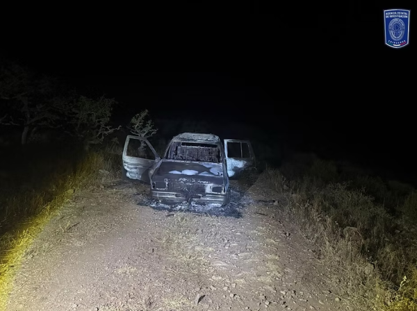 En la escena se localizó también un vehículo de la marca Nissan, línea Pathfinder, modelo 1993, el cual presentaba daños totales por incendio.