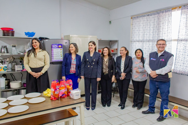 El equipamiento entregado incluye estufa, campana, mesas, bancas, minisplit, tarja, gabinetes, lavamanos, mesa de trabajo, refrigerador y tanque de gas, elementos que permitirán ofrecer alimentos en mejores condiciones, recordando que este plantel es uno de los más antiguos del municipio y que en años recientes también resultó beneficiado con la instalación de la techumbre, proyecto que ganó mediante el Presupuesto Participativo.