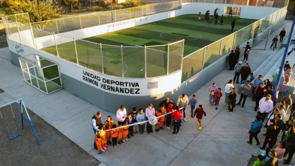 La alcaldesa Miriam Soto encabezó la inauguración de la rehabilitación de la Unidad Deportiva Ramón Hernández, ubicada en el seccional de Lázaro Cárdenas, siendo parte del Presupuesto Participativo, la cual fue nombrada en honor a un destacado habitante del seccional.