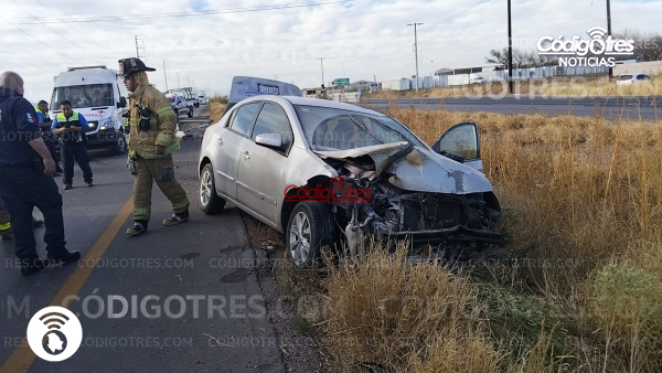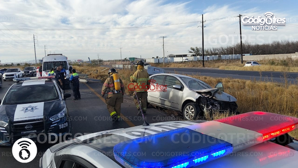 Meoqui, Chihuahua.- Minutos después de las 4 de la tarde de este sábado, se desplegaron representantes de la diferentes cuerpos de emergencia del municipio de Meoqui a la carretera federal #45 a la altura del Hotel Kavia donde se había registrado un choque con volcadura y conato de incendio en el mismo vehículo involucrado.
