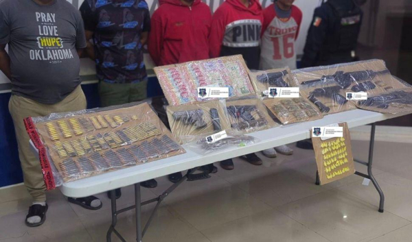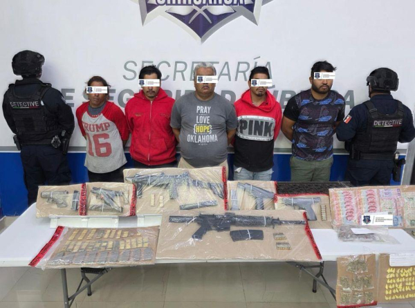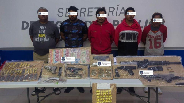 En el lugar fueron detenidos José “N” de 28 años, Jesús “N” de 33 años, Jorge Alberto “N” de 48 años, Jaime Alejandro “N” de 26 años y Alfonso “N” de 28 años, quienes no contaban con permiso para la portación del armamento localizado.