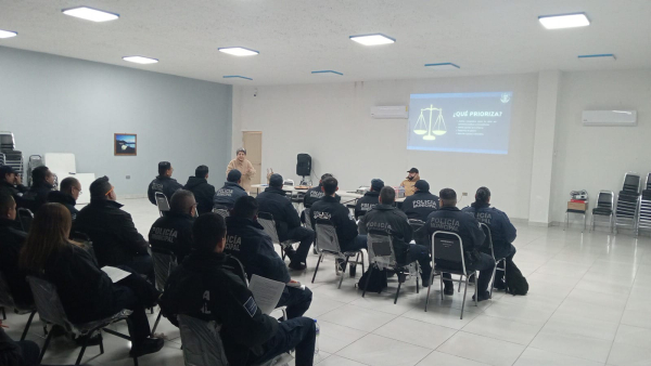 Rosales, Chih.– Con el firme compromiso de fortalecer las capacidades institucionales y mejorar la atención a la ciudadanía, personal de la Dirección de Seguridad Pública y Vialidad del Municipio de Rosales participó en una capacitación en materia de Justicia Cívica, impartida por la Secretaría de Seguridad Pública del Estado.