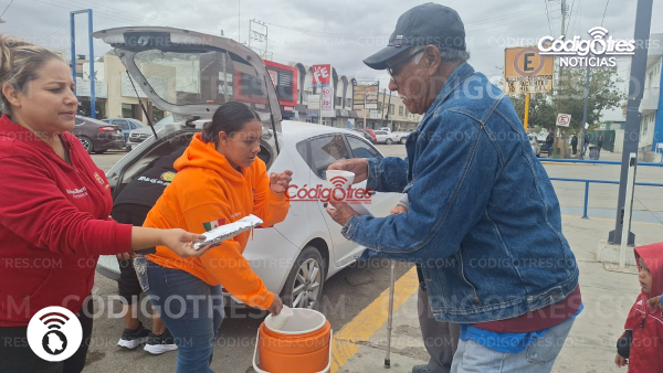 Delicias. - Las asociaciones civiles Halcones de la Perla del Conchos y Amigos Unidos decidieron celebrar en conjunto el Día Internacional del Voluntario llevando alimentos y cobijas a las personas que están afuera del área de hospitales.