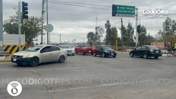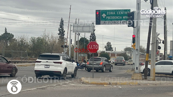 Delicias. - Se juntó la hora pico con la falla de las plumas férreas en la Av. Ferrocarril por lo que hay bastante congestionamiento vehicular.