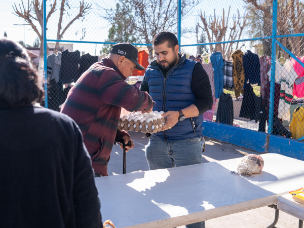 Este sábado, la colonia K92 recibió una nueva edición del programa Mercarreón, donde el diputado Roberto Carreón acercó frijol, queso y huevo a precios accesibles y subsidiados para apoyar el gasto semanal de las familias.