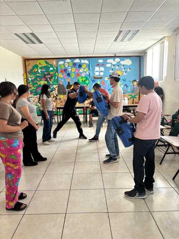 Durante la jornada, se abordaron temas como crianza asertiva y prevención de adicciones, brindando a los jóvenes información clave para su desarrollo emocional y familiar. Además, como parte de las acciones enfocadas a la prevención y el autocuidado, se impartió el taller “Defiende-T”, dirigido especialmente a alumnas, con técnicas básicas de defensa personal.