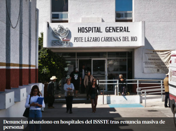 H. Cd de Chihuahua.— Usuarios del sistema de salud pública en la ciudad de Chihuahua denunciaron una grave afectación en los servicios del Instituto de Seguridad y Servicios Sociales de los Trabajadores del Estado (ISSSTE), luego de que presuntamente se registrara una renuncia masiva de personal médico y administrativo el pasado viernes 11 de noviembre.