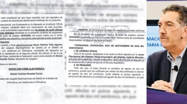 La Fiscalía Anticorrupción del Estado de Chihuahua confirmó que los jueces federales dejaron sin efecto las medidas de amparo que el imputado había obtenido al promover demandas contra las órdenes de captura. Dichas suspensiones estaban condicionadas a que compareciera voluntariamente ante la autoridad judicial en un plazo de tres días, obligación que incumplió en todos los casos.