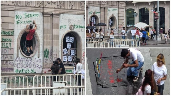 Un grupo de ciudadanos se manifestó este viernes contra una corrida de toros frente a la Presidencia Municipal en la Plaza de Armas, donde dos personas fueron detenidas por realizar pintas en el edificio histórico; el Gobierno Municipal aclaró que el evento que motivó la protesta se llevará a cabo en Ciudad Juárez y no en la capital.