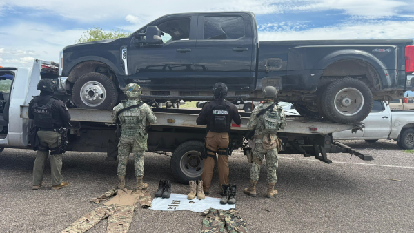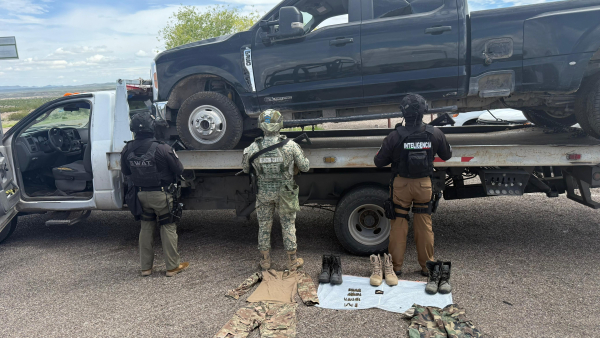 Gracias al trabajo coordinado entre la Secretaría de Seguridad Pública del Estado (SSPE), a través de Inteligencia y Análisis Táctico y el Grupo Especial SWAT, en colaboración con la Secretaría de Defensa, se logró el aseguramiento de un vehículo con reporte de robo, cartuchos útiles y equipo táctico en el municipio de Aldama.