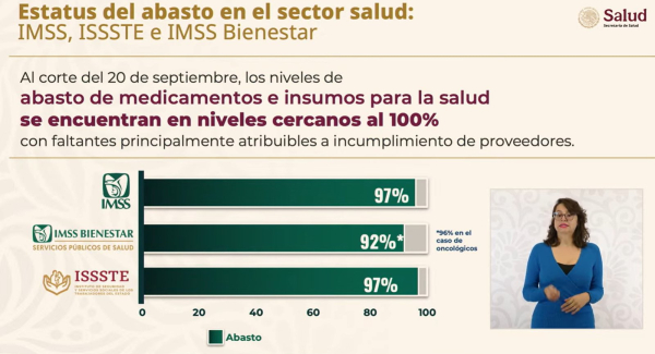 Aunque reportó un abasto general del 92 al 97% en instituciones como el IMSS, ISSSTE e IMSS-Bienestar, el funcionario reconoció que el problema persiste y urgió a los proveedores a cumplir sus contratos. “Les pedimos que se tomen en serio los compromisos con los pacientes mexicanos”, declaró.