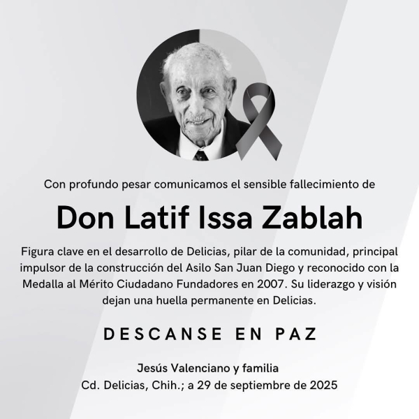 El alcalde de Delicias, Jesús Valenciano, lamentó el sensible fallecimiento de Don Latif Issa Zablah.