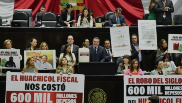 Durante el debate, los legisladores del PAN llevaron pancartas y un bidón de gasolina al pleno para denunciar lo que llamaron “el robo del siglo”, mientras que Morena defendió la reforma asegurando que busca limpiar las aduanas y evitar que sigan siendo un foco de corrupción.