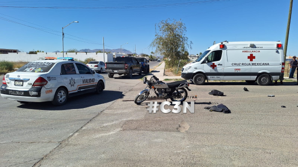 Delicias.- El percance vial en donde resultó lesionado el motociclista fue en la C.9na y Av. 16 sur.