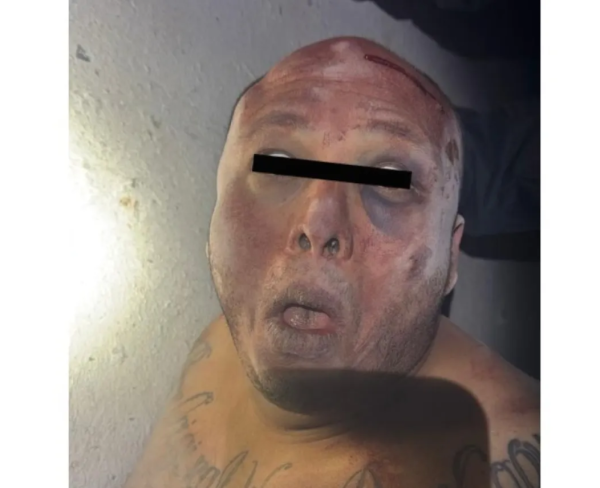 Se mencionó que el sujeto no presentaba golpes nuevos, sino los causados por sí mismo al golpear su cabeza contra el piso cuando fue arrestado.