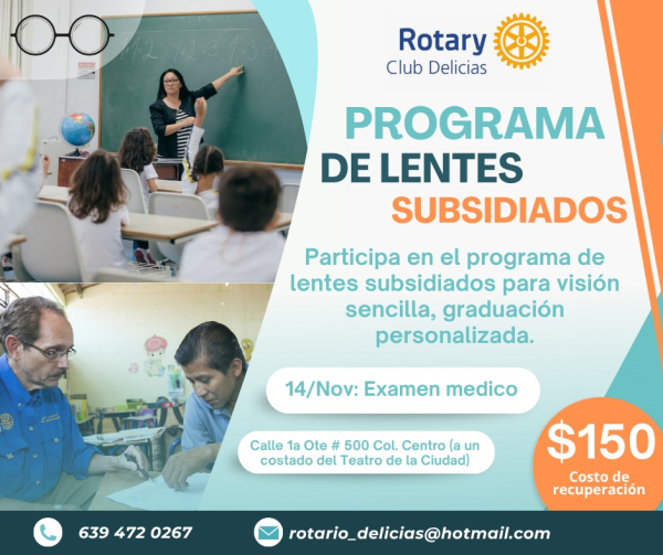 Delicias. – El día de mañana el Club Rotario Delicias realizará un programa de lentes subsidiados con la intención de beneficiar a la ciudadanía que tiene problemas de visión.