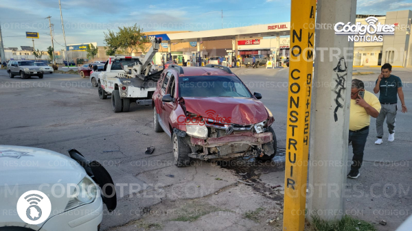 Un aparatoso percance vehicular se registró hace unos momentos en el cruce de la avenida del Parque y la avenida Plutarco Elías Calles, en el sector sur de la ciudad de Delicias, en donde dos vehículos terminaron con daños de consideración, luego de que uno de los conductores no respetó la preferencia de paso, generando un fuerte impacto que alarmó a vecinos y automovilistas que transitaban por la zona.