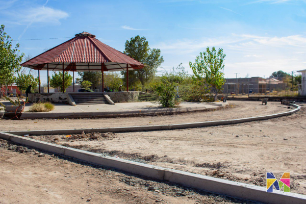 El Gobierno Municipal de Meoqui continúa acercando infraestructura a cada rincón del municipio y en esta ocasión, se avanza con la pavimentación de la calle perimetral que rodea el kiosco ubicada junto al Salón de Actos del seccional de Guadalupe Victoria.