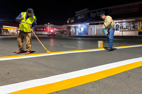 En esta ocasión, el equipo de Vialidad trabajó en la aplicación de líneas continuas, discontinuas y cruces peatonales dentro del circuito del Mercado Juárez. Estas acciones permiten mejorar la visibilidad nocturna, ordenar los flujos vehiculares y brindar mayor seguridad a quienes transitan por la zona, especialmente durante la temporada decembrina.