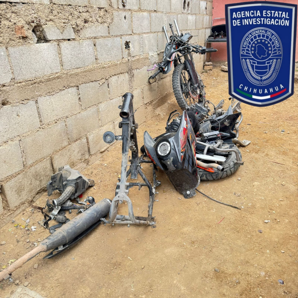 En una primera intervención realizada en la calle Literatos Mexicanos, de la colonia Gómez Morín, detuvieron a Alexis Jonathan M. C., de 19 años de edad, quien fue sorprendido cuando desmantelaba una motocicleta de la marca Italika, línea dm 250, modelo 2022, reportada como robada el 22 de noviembre del presente año en la ciudad de Parral.