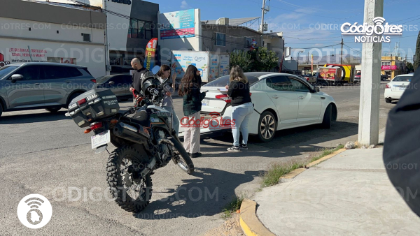 Delicias.- Un motociclista fue impactado por un automóvil marca Kia línea Óptima frente a CT Scan.