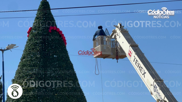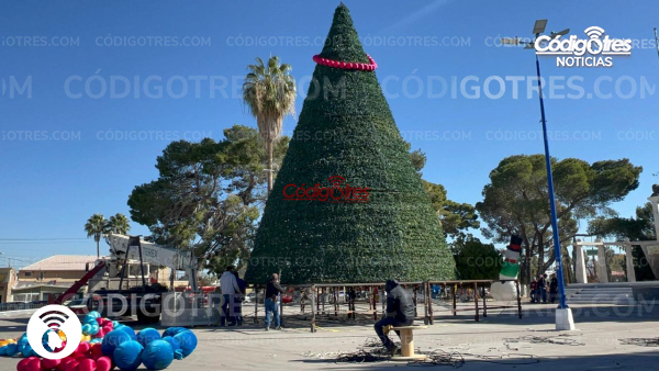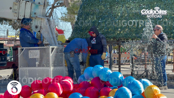 Delicias. – Patricio Barrera, comandante de Protección Civil, informa que estuvieron revisando que el pino navideño que se encenderá mañana en Delicias cuente con todas las medidas necesarias de seguridad.