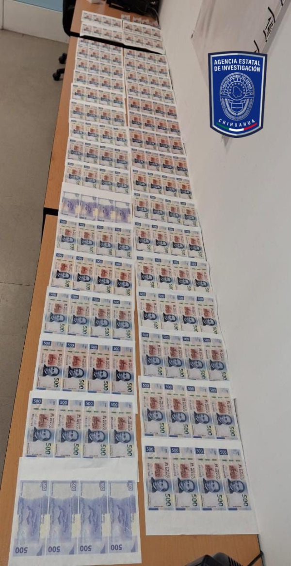 También se le localizaron hojas impresas con imágenes de billetes de $500 pesos, tintas de color azul y material diverso que, según el propio sujeto, utilizaba para la elaboración de billetes que aparentaban ser legítimos.
