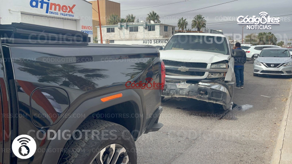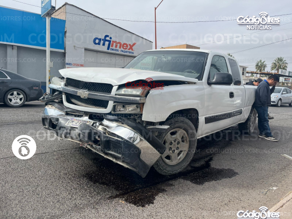 Delicias. – 3 vehículos se vieron afectados en un choque en la Av. 6ta y C. 2da oriente, una mujer presentó dolor.