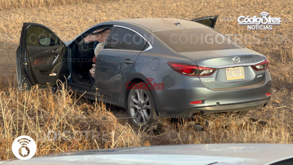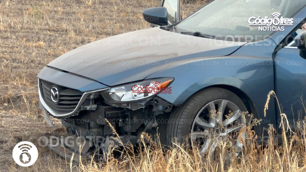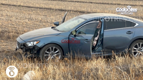 Delicias. - El conductor de un automóvil marca Mazda sufrió una distracción y salió del camino en la entrada a la ex hacienda, carretera hacia Rosales.