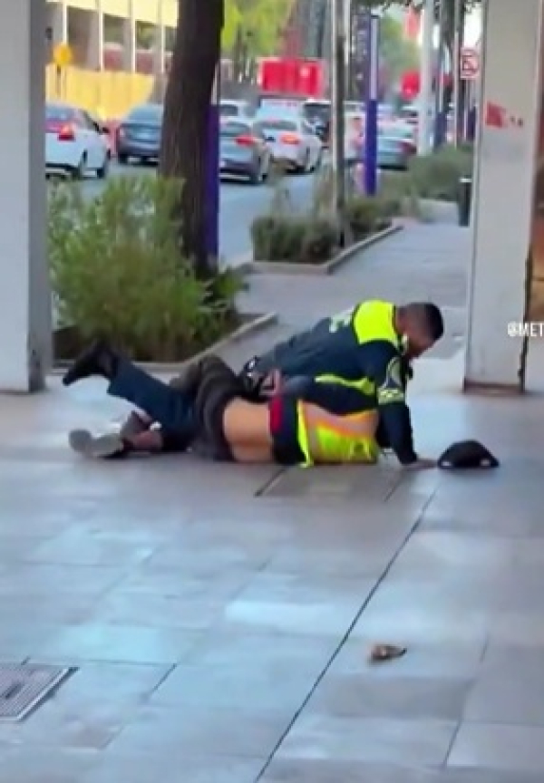 En el video viralizado en este inicio del 2026, se observa el intercambio de golpes hasta que ambos caen al suelo cerca del arroyo vehicular, momento en que el agresor intentó despojar al oficial de su arma de cargo, poniendo en riesgo la integridad de los presentes.