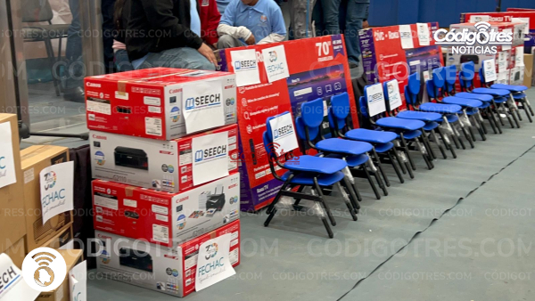 Delicias. –Esta mañana Franghie Khalil, Presidenta Estatal de La Fundación del Empresariado Chihuahuense (FECHAC), encabezó la entrega de equipo a 79 escuelas de los municipios de Delicias, Saucillo, Rosales, Meoqui y Julimes. Momento en donde se aprovechó para preguntarle cómo se sentía al asumir el cargo.
