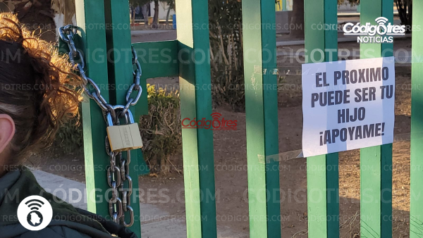 Meoqui. – Esta mañana la madre de un alumno y comunidad decidieron llevar a cabo la clausura de la Escuela Secundaria Estatal Familia Stege #3026, en el municipio de Meoqui, debido a que hay un caso fuerte de bullying.