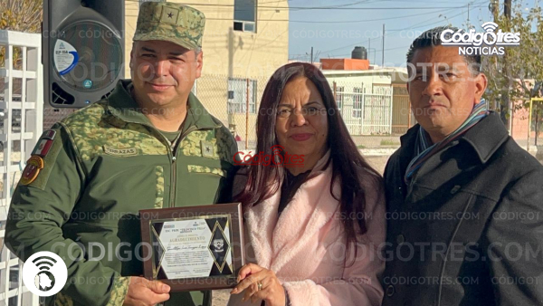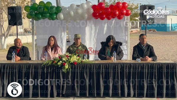 Juan Martínez, director de la Escuela Primaria ‘’Francisco Villa’’, agradeció la participación del Batallón a cargo del mayor Guadalupe Terrazas a quien entregó un reconocimiento. Además, dio un discurso en donde resaltó la importancia de que hayan podido acompañarlos a hacer honores a la bandera:
