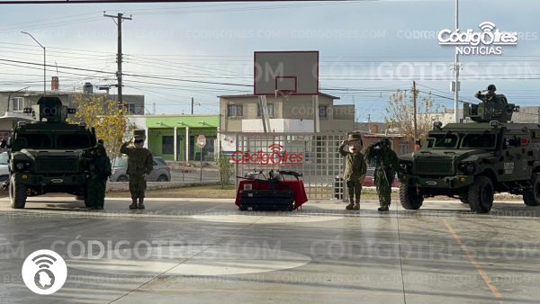 Delicias. – Esta mañana el 66 Batallón de Infantería estuvo presente en la Escuela Primaria ‘’Francisco Villa’’ para mostrar algunas de las actividades que pueden llegar a realizar y hacer honores a la bandera.