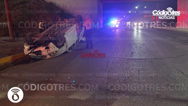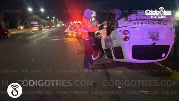 Delicias. – Cerca de las 7 am un automóvil Chevrolet línea HHR volcó en la carretera federal a la altura del puente de la colonia Carmen Serdán.