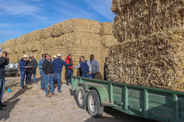 En esta primera etapa se entregan 400 pacas, como parte de una dotación total de 2 mil pacas por municipio, destinadas a fortalecer la alimentación del ganado y mitigar los efectos de la escasez de forraje. Detalló que el costo de cada paca es cubierto en su totalidad por el Gobierno del Estado, mientras que los productores únicamente aportan el pago del flete y la maniobra para la carga en sus propias unidades.