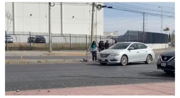 En las imágenes se observa el auto detenido, mientras que una jovencita con uniforme de Bachilleres está parada a un lado y un señor de camisa de cuadros camina alrededor de la unidad.