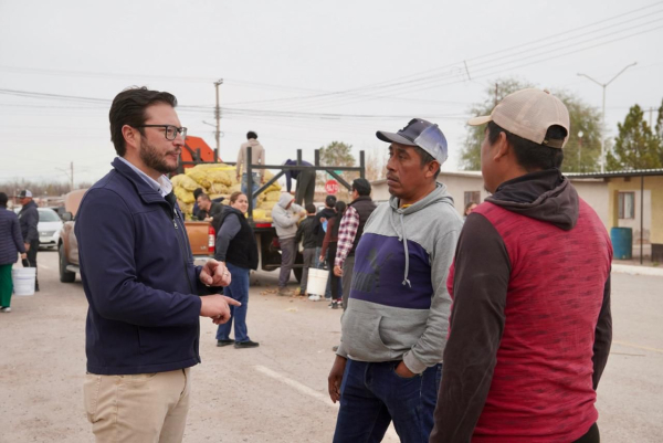 Delicias, Chih.– Como parte de una estrategia de apoyo directo a las familias que más lo necesitan, el coordinador estatal de regidores, Mario Mata, realizó la entrega de alimento básico (papa) en distintas colonias rurales del municipio, fortaleciendo la alimentación y contribuyendo a la economía de los hogares beneficiados.